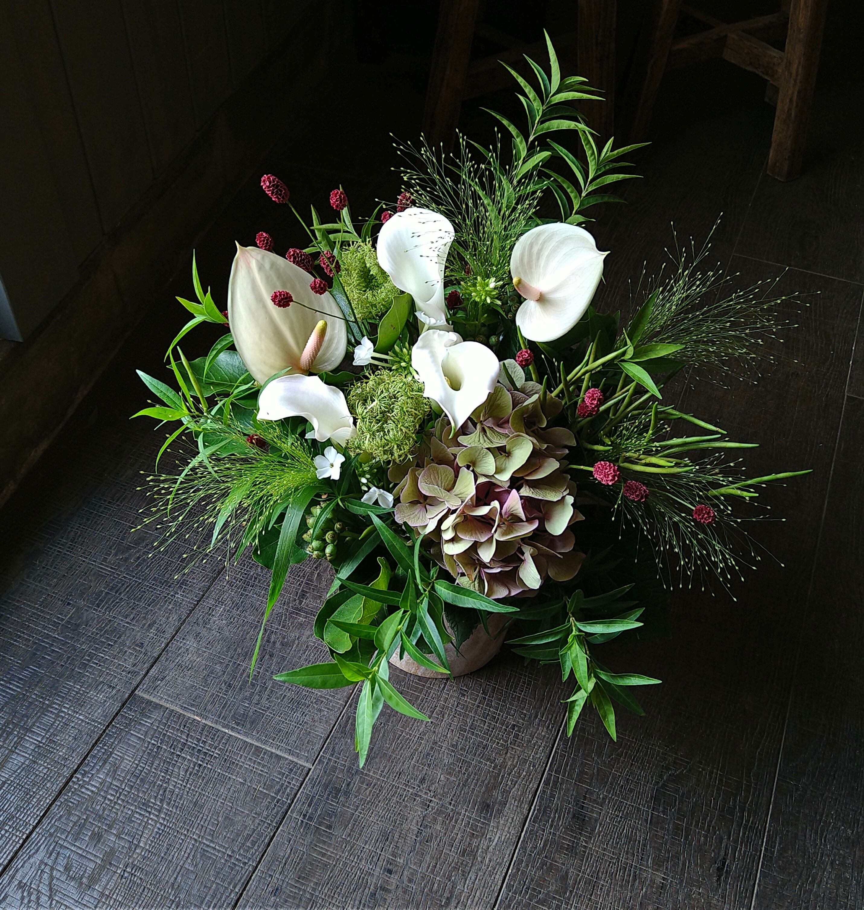 季節のお花や草花をたっぷり使ってお作りします。